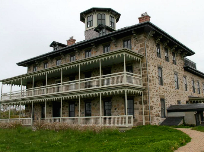 Built in 1854 by David Sisson, an iron and textile manufacturer, this three-story granite home, located in Little Compton, Rhode Island, most recently served as a luxury inn.